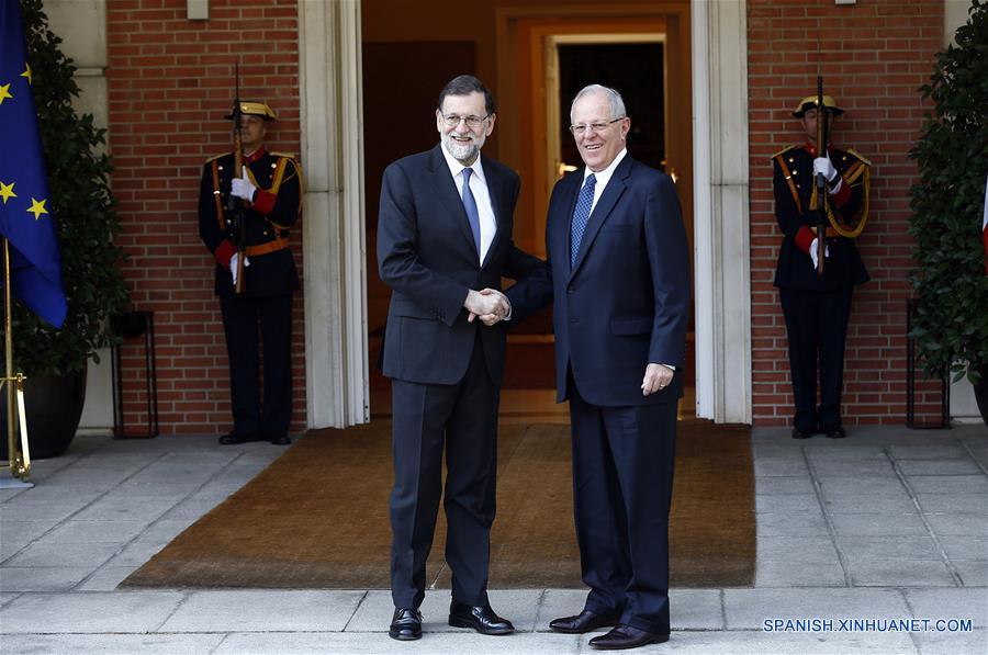 MADRID, 12 jun (Xinhua) -- El presidente del gobierno espa?ol, Mariano Rajoy, y el mandatario de Perú, Pedro Pablo Kuczynski, sostuvieron hoy un reunión de trabajo en Madrid para profundizar las relaciones bilaterales y económicas entre ambos países, informó hoy la oficina de prensa del Palacio de la Moncloa, sede del Ejecutivo espa?ol.