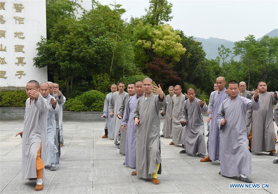 Los monjes practican Taiji en el Colegio Budista del Monte Jiuhua, provincia de Anhui, 15 de junio del 2017. Esta destacado centro de ense?anza fue fundado en 1990. (Foto: Guo Chen)