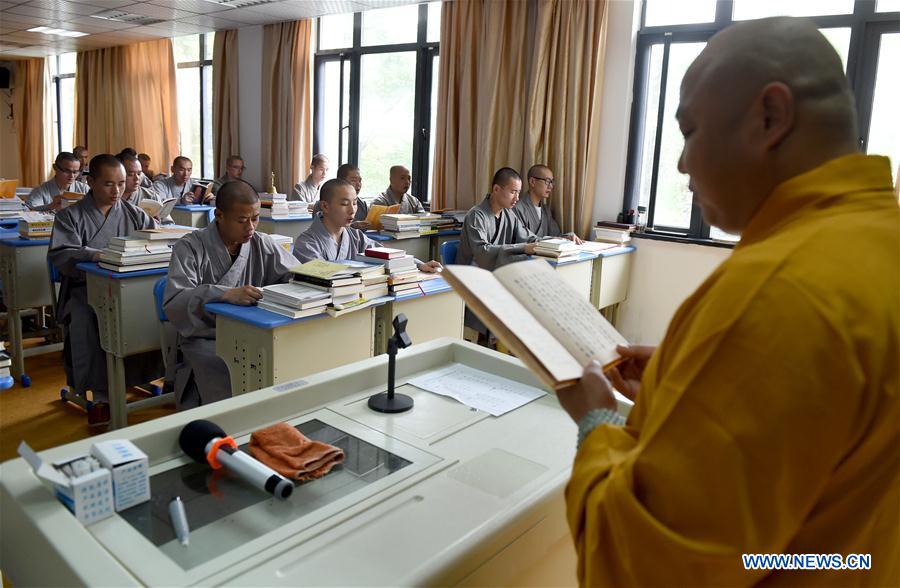 Anhui, 19/06/2017 (El Pueblo en Línea) - Monjes asisten a clase en el Colegio Budista del Monte Jiuhua, provincia de Anhui, el 15 de junio del 2017. Esta destacado centro de ense?anza fue fundado en 1990. (Foto: Guo Chen)