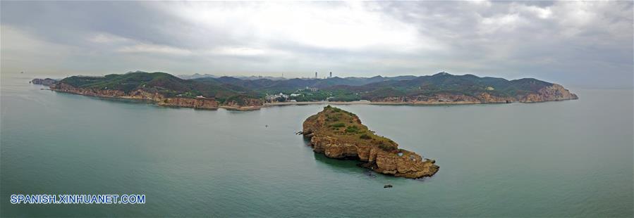 DALIAN, junio 20, 2017 (Xinhua) -- Imagen combinada tomada el 12 de junio de 2017 de una vista aérea de la isla Bangchui en Dalian, provincia de Liaoning, en el noreste de China. Dalian es una de las ciudades sede del Foro Davos de Verano. (Xinhua/Li Xin)