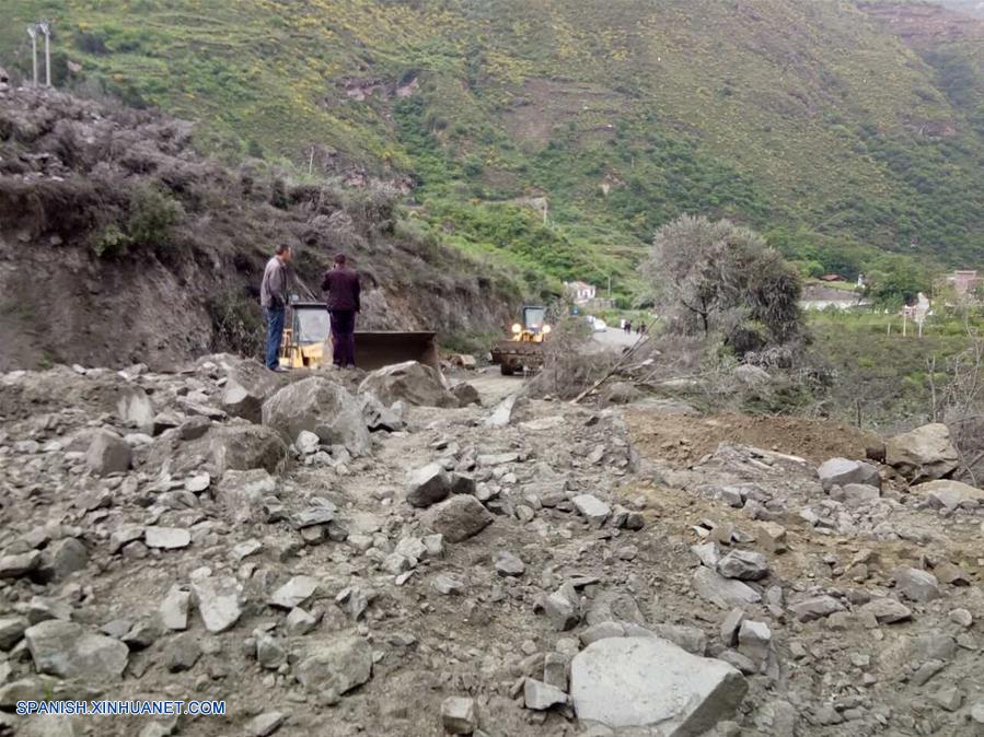 SICHUAN, junio 24, 2017 (Xinhua) -- Vista del sitio de un accidente después de un deslave en el poblado de Xinmo del condado Maoxian de la prefectura autónoma tibetana y qiang, en la provincia de Sichuan, en el suroeste de China, el 24 de junio de 2017. Un deslizamiento de tierra el sábado aplastó unas 40 casas, donde se teme que estén enterradas unas 100 personas. (Xinhua/Str)