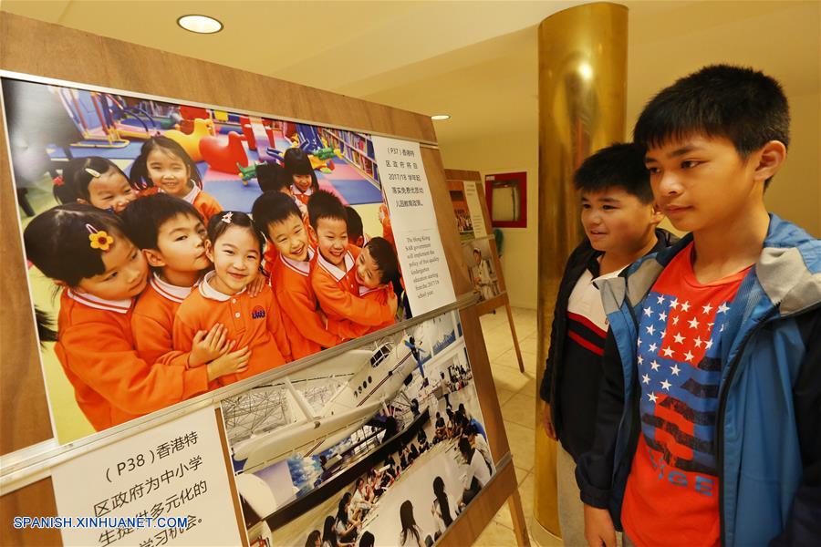 CALIFORNIA, junio 24, 2017 (Xinhua) -- Estudiantes observan una exposición fotográfica para conmemorar el 20 aniversario del retorno de Hong Kong a China, en San Francisco, California, Estados Unidos, el 24 de junio de 2017. La exposición mostró aproximadamente 60 fotografías cedidas por el Ministerio de Relaciones Exteriores de China para resaltar momentos históricos, así como la vida social y económica de Hong Kong, desde que China resumió el ejercicio de la soberanía sobre el territorio el 1 de julio de 1997. (Xinhua/Liu Yilin)