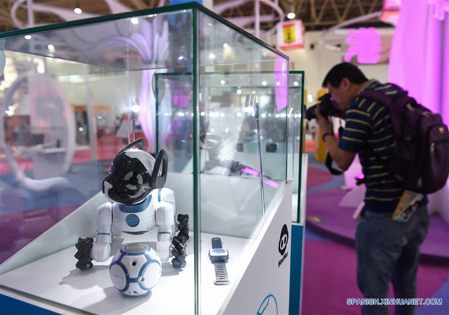 Un hombre toma una fotografía de productos exhibidos durante la Expo Productos de Moda de Hong Kong 2017, en Beijing, capital de China, el 27 de junio de 2017. La exposición de seis días comenzó el martes en el Centro Nacional de Exposiciones Agrícolas. (Xinhua/Shen Hong)