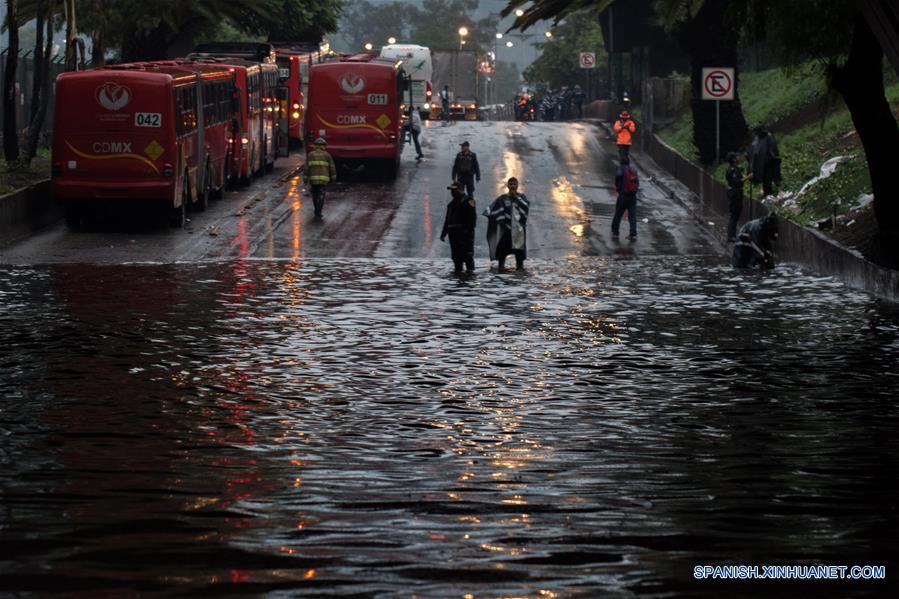 CIUDAD DE MEXICO, junio 29, 2017 (Xinhua) -- Personas observan una calle inundada luego de fuertes lluvias, en la Ciudad de México, capital de México, el 29 de junio de 2017. De acuerdo con información de la prensa local, las fuertes lluvias registradas la tarde del jueves causaron al menos seis inundaciones y varios encharcamientos en el norte y oriente de la Ciudad de México, un día después de que se registraran fuertes afectaciones por los 72 mm de lluvia que cayeron en el poniente y norte de la Zona Metropolitana del Valle de México. (Xinhua/Francisco Ca?edo)