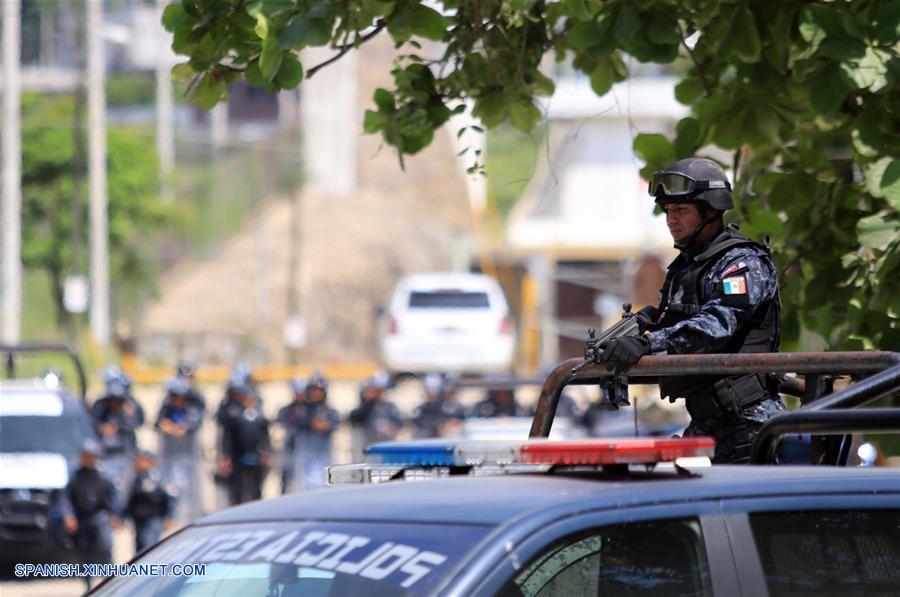 Policías estatales llegan al Centro de Readaptación Social luego del enfrentamiento entre reos ocurrido durante la madrugada, en el puerto de Acapulco, en el estado de Guerrero, México, el 6 de julio de 2017. (Xinhua/David Guzmán)