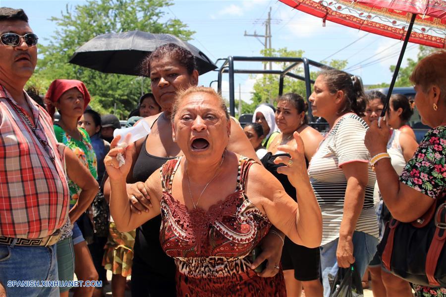Familiares de los presos se reúnen en las afueras del Centro de Readaptación Social, luego del enfrentamiento entre reos ocurrido durante la madrugada, en Acapulco, estado de Guerrero, México, el 6 de julio de 2017. (Xinhua/David Guzmán)