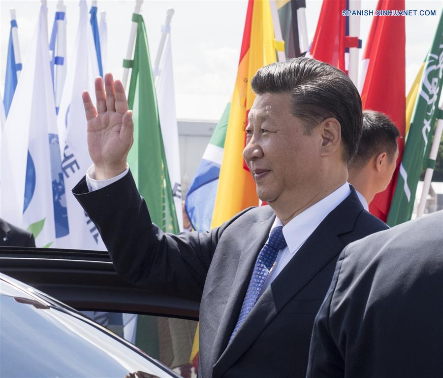 HAMBURGO, julio 6, 2017 (Xinhua) -- El presidente de China, Xi Jinping, llega al aeropuerto para asistir a la 12 Cumbre del Grupo de los Veinte (G20), en Hamburgo, Alemania, el 6 de julio de 2017. (Xinhua/Li Xueren)