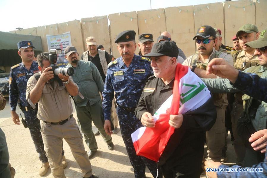 MOSUL, Irak, 9 jul (Xinhua) -- El primer ministro de Irak, Haider al-Abadi, llegó hoy a Mosul y felicitó a las fuerzas armadas por su victoria contra el Estado Islámico (EI) después de 266 días de batalla.