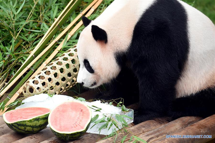YONGIN, julio 12, 2017 (Xinhua) -- El panda gigante chino "Le Bao" se alimenta de su "comida de cumplea?os" en el Zoológico de Everland, en la ciudad de Yongin, República de Corea, el 12 de julio de 2017. El cumplea?os para uno de los dos pandas gigantes, arrendados por China, fue celebrado el miércoles en el Zoológico de Everland, el mayor parque temático de República de Corea localizado en Yongin, a 40 kilómetros al sur de la capital Seúl. (Xinhua/Newsis)