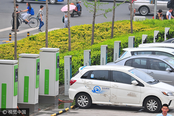 Coches eléctricos en Zhongguancun, Beijing. [Foto: VCG]