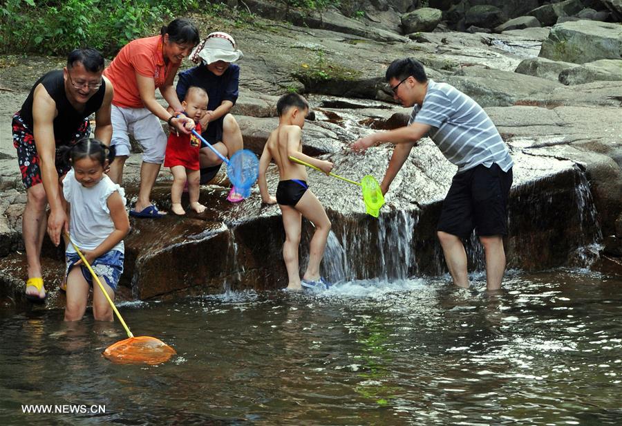Ciudadanos de Hangzhou se divierten en la aldea de Baisha de Lin'an, provincia china de Zhejiang, el 20 de julio de 2017. Con una temperatura media de 26 grados en verano, la aldea Baisha de Lin'an se ha convertido en un popular destino turístico en la provincia. En los últimos a?os, el turismo rural se ha desarrollado dramáticamente en Baisha, para el que ha sido necesario el 90% de la mano de obra local. (Xinhua / Tan Jin)