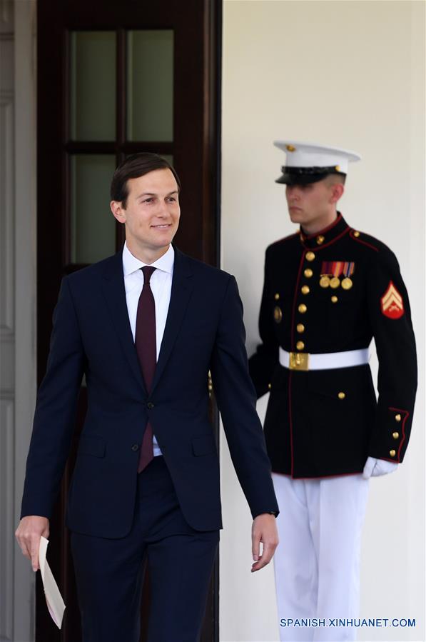 WASHINGTON D.C., julio 24, 2017 (Xinhua) -- Jared Kushner (i), yerno del presidente estadounidense Donald Trump y consejero superior de la Casa Blanca se retira de la Ala Oeste de la Casa Blanca para dar una declaración después de testificar durante una audiencia a puerta cerrada del Comité de Inteligencia del Senado en Capitol Hill, Washington D.C., Estados Unidos, el 24 de julio de 2017. De acuerdo con información de la prensa local, el consejero superior de la Casa Blanca, Jared Kushner el lunes negó haber coludido con el gobierno ruso a pesar de las cuatro reuniones con ciudadanos rusos durante el periodo de campa?a y transición. (Xinhua/Yin Bogu)