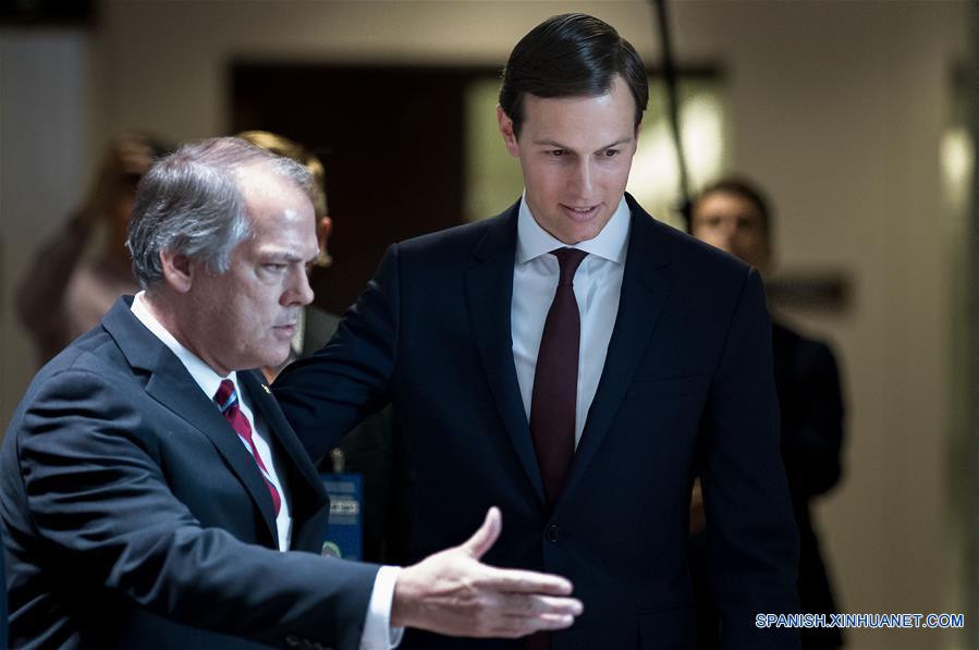 WASHINGTON D.C., julio 24, 2017 (Xinhua) -- Jared Kushner (d), yerno del presidente estadounidense Donald Trump y consejero superior de la Casa Blanca se retira después de testificar durante una audiencia a puerta cerrada del Comité de Inteligencia del Senado en Capitol Hill, Washington D.C., Estados Unidos, el 24 de julio de 2017. De acuerdo con información de la prensa local, el consejero superior de la Casa Blanca, Jared Kushner el lunes negó haber coludido con el gobierno ruso a pesar de las cuatro reuniones con ciudadanos rusos durante el periodo de campa?a y transición. (Xinhua/Ting Shen)