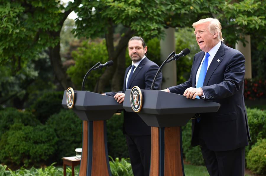 WASHINGTON D.C., julio 25, 2017 (Xinhua) -- El presidente estadounidense, Donald Trump (d), participa en una conferencia de prensa conjunta con el visitante primer ministro libanés, Saad Hariri (i), en la Casa Blanca, en Washington D.C., Estados Unidos, el 25 de julio de 2017. El presidente de Estados Unidos, Donald Trump, dijo el martes que no permitirá al presidente de Siria, Bashar al-Assad, salirse con la suya por las "terribles" acciones que ha cometido. (Xinhua/Yin Bogu)