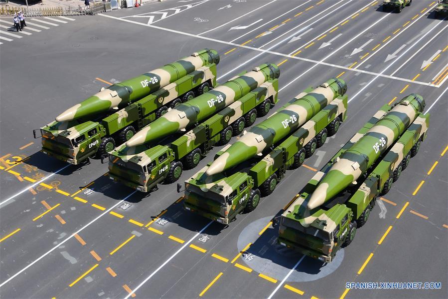 Imagen de archivo del 3 de septiembre de 2015, de misiles DF-26 exhibidos durante un desfile militar en Beijing, capital de China. (Xinhua/Str)