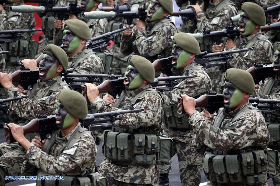 Miembros de las Fuerzas Armadas peruanas participan durante la Gran Parada y Desfile Cívico-Militar, en el marco de las celebraciones del 196 Aniversario de la Independencia de Perú, en la ciudad de Lima, Perú, el 29 de julio de 2017. (Xinhua/Luis Camacho)