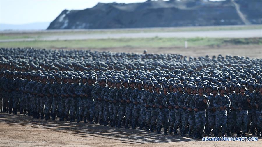 Tropas realizan preparativos para un desfile militar en la base de entrenamiento de Zhurihe, en la Región Autónoma de Mongolia Interior, en el norte de China, el 30 de julio de 2017. China celebrará el domingo a las 9:00 un desfile militar en la base de entrenamiento de Zhurihe, situada en la Región Autónoma de Mongolia Interior, en el norte del país, para conmemorar el 90 aniversario de la fundación del Ejército Popular de Liberación (EPL). (Xinhua/Li Gang)