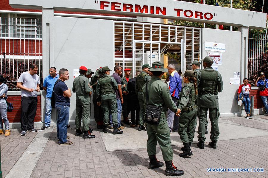 CARACAS, julio 30, 2017 (Xinhua) -- Residentes y militares esperan para emitir su voto durante la elección de la Asamblea Nacional Constituyente (ANC), en un centro de votación en la Unidad Educativa Fermín Toro en Caracas, Venezuela, el 30 de julio de 2017. La rectora del Consejo Nacional Electoral (CNE) de Venezuela, Socorro Hernández, informó que, pasadas las 9:30 hora local, se ha aperturado el 93 por ciento de las mesas dispuestas para la elección de la Asamblea Nacional Constituyente (ANC) que se efectúa el domingo. (Xinhua/Boris Vergara)