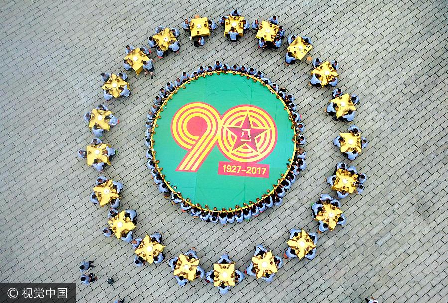 Una vista aérea muestra a los veteranos degustando juntos las delicias gastronómicas locales en lo alto de la monta?a Funiu, en Luoyang, provincia de Henan, 31 de julio de 2017.[Foto: VCG]