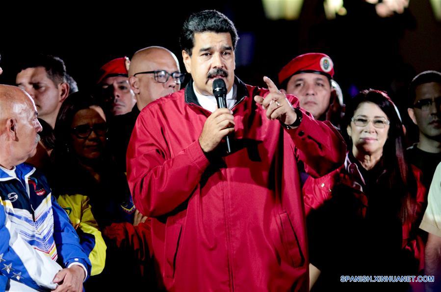 CARACAS, julio 31, 2017 (Xinhua) -- Imagen cedida por la Presidencia de Venezuela del presidente venezolano Nicolás Maduro (c), pronunciando un discurso luego de la elección de la Asamblea Nacional Constituyente (ANC), en Plaza Bolívar, en Caracas, Venezuela, durante las primeras horas del 31 de julio de 2017. La presidenta del Consejo Nacional Electoral (CNE) de Venezuela, Tibisay Lucena, confirmó el domingo que 8,089.320 venezolanos participaron en los comicios de la Asamblea Nacional Constituyente (ANC) para un total de 41,53 por ciento del padrón electoral. Un total de 19,477.387 venezolanos estuvieron habilitados para sufragar y elegir entre 6,120 candidatos para componer una ANC que tendrá dentro de sus facultades más importantes intervenir o limitar las competencias de los poderes públicos de la nación así como redactar una nueva Carta Magna. (Xinhua/Presidencia de Venezuela)