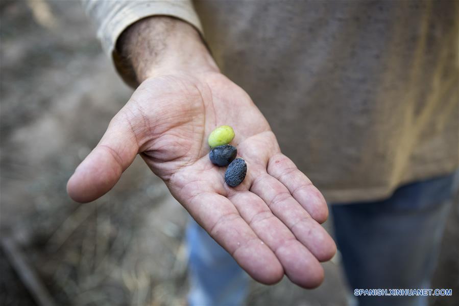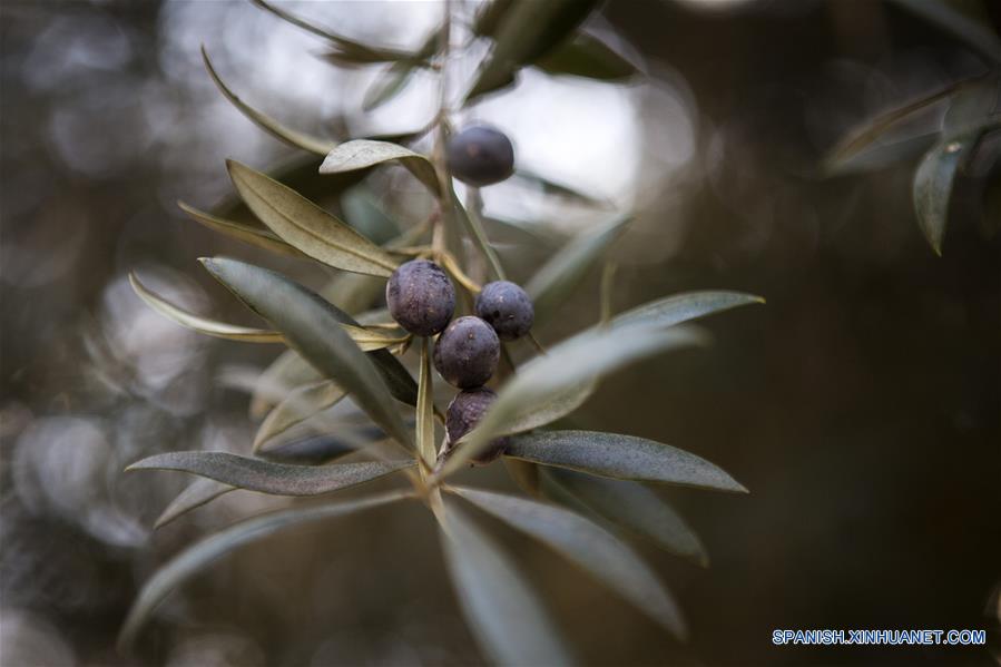 Imagen del 22 de julio de 2017 de aceitunas maduras producidas por los olivares centenarios en la Empresa Olivícola y Acetaia Laur en la localidad de Cruz de Piedra, departamento Maipú, en la provincia de Mendoza, Argentina. (Xinhua/Martín Zabala)