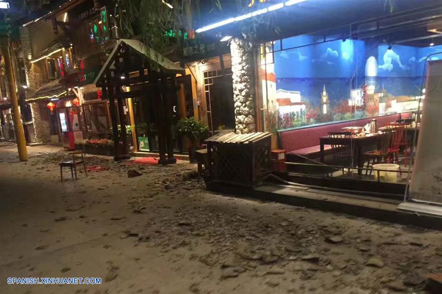 Vista de una calle luego de un sismo en el condado de Jiuzhaigou de la provincia de Sichuan, en el suroeste de China, el 8 de agosto de 2017. (Xinhua/Str)