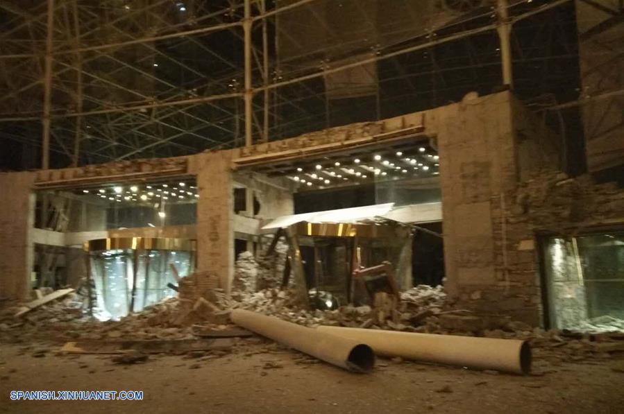 Vista de la entrada de un hotel da?ada luego de un sismo en el condado de Jiuzhaigou de la provincia de Sichuan, en el suroeste de China, el 8 de agosto de 2017. (Xinhua/Str)