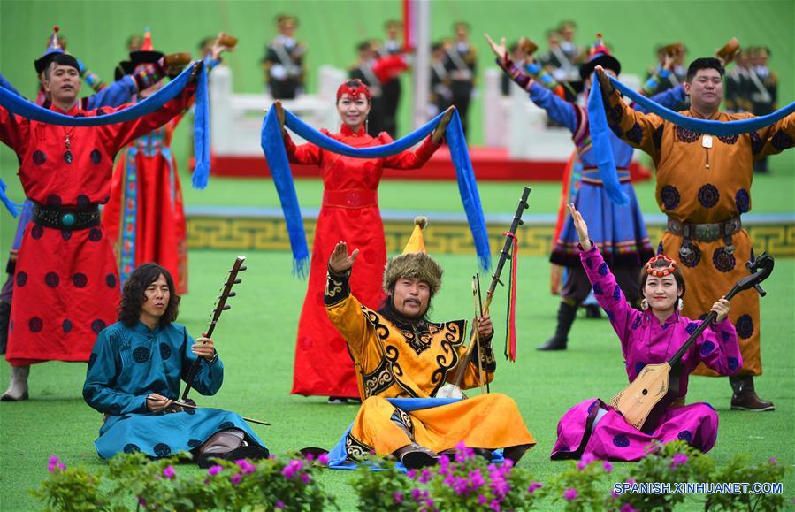 HOHHOT, agosto 8, 2017 (Xinhua) -- Un cantante (c-abajo) actúa durante la celebración para conmemorar el 70 aniversario de la Región Autónoma de Mongolia Interior, en Hohhot, en la Región Autónoma de Mongolia Interior, en el norte de China, el 8 de agosto de 2017. (Xinhua/Deng Hua)