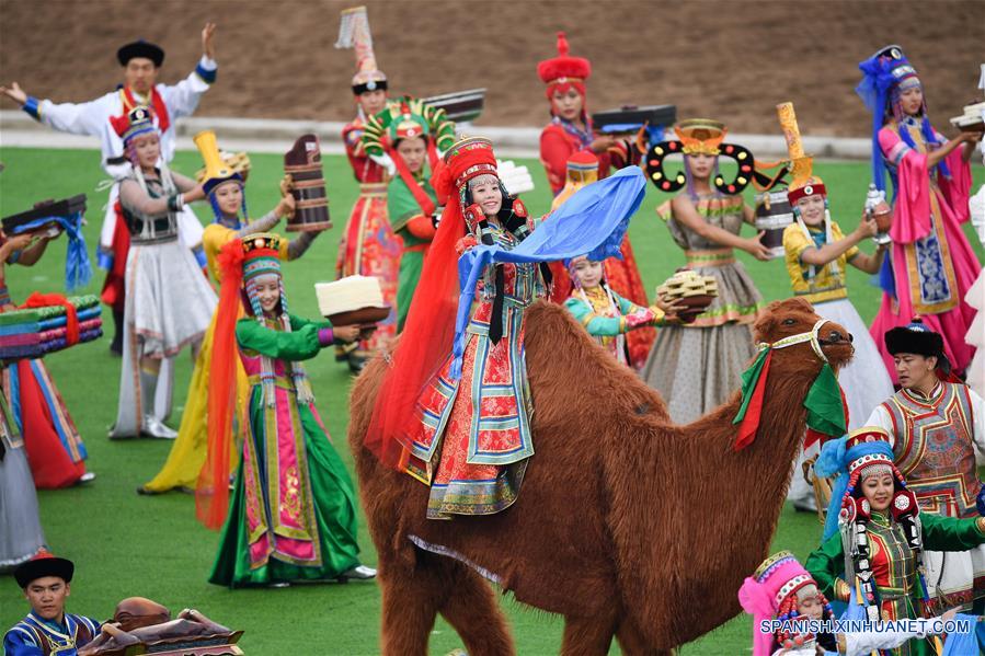 HOHHOT, agosto 8, 2017 (Xinhua) -- Bailarines actúan durante la celebración para conmemorar el 70 aniversario de la Región Autónoma de Mongolia Interior, en Hohhot, en la Región Autónoma de Mongolia Interior, en el norte de China, el 8 de agosto de 2017. (Xinhua/Chen Yehua)