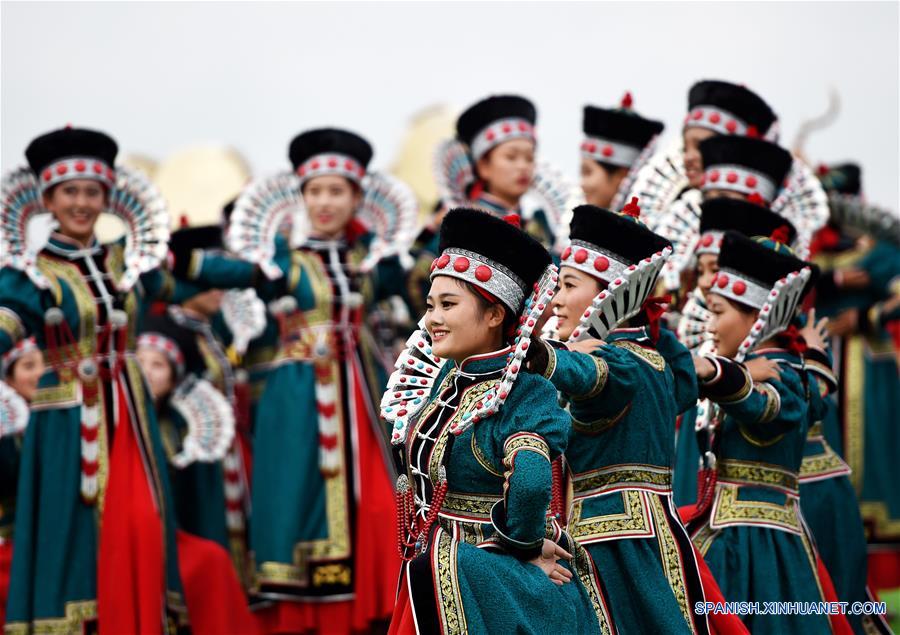 HOHHOT, agosto 8, 2017 (Xinhua) -- Bailarinas actúan durante la celebración para conmemorar el 70 aniversario de la Región Autónoma de Mongolia Interior, en Hohhot, en la Región Autónoma de Mongolia Interior, en el norte de China, el 8 de agosto de 2017. (Xinhua/Ren Junchuan)