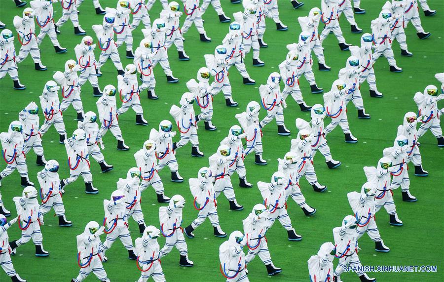 HOHHOT, agosto 8, 2017 (Xinhua) -- Bailarines actúan durante la celebración para conmemorar el 70 aniversario de la Región Autónoma de Mongolia Interior, en Hohhot, en la Región Autónoma de Mongolia Interior, en el norte de China, el 8 de agosto de 2017. (Xinhua/Lian Zhen)