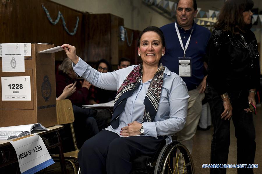 BUENOS AIRES, agosto 13, 2017 (Xinhua) -- La vicepresidenta de Argentina, Gabriela Michetti (frente), emite su voto en una mesa de votación en Buenos Aires, capital de Argentina, el 13 de agosto de 2017. De acuerdo con información de la prensa local, el domingo se llevan a cabo en Argentina las elecciones Primarias, Abiertas, Simultáneas y Obligatorias (PASO), donde los ciudadanos elegirán a los candidatos a diputados y senadores que competirán durante las elecciones legislativas del 22 de octubre. (Xinhua/Florencia Downes/TELAM)