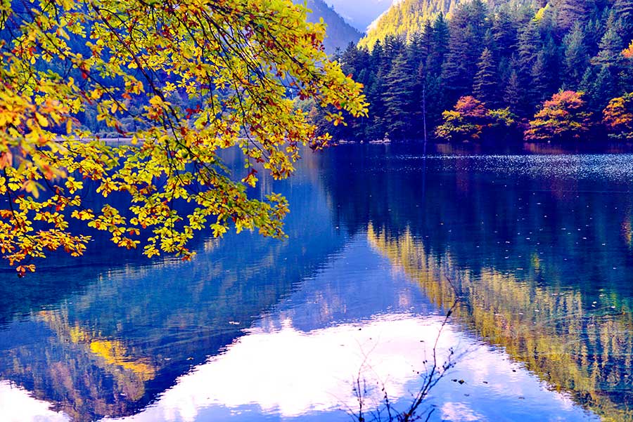 Paisaje del Lago del Espejo en Jiuzhaigou. [Foto: Ju Chuanjiang / Asianewsphoto]