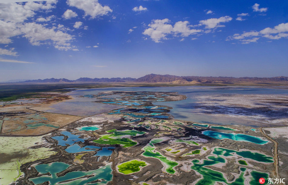 El impresionante paisaje en el lago salado Da Qaidam, provincia de Qinghai, al noroeste de China. La gente local lo describe como un milagro regalado por una deidad. Foto del 3 de agosto de 2017. [Foto: IC]