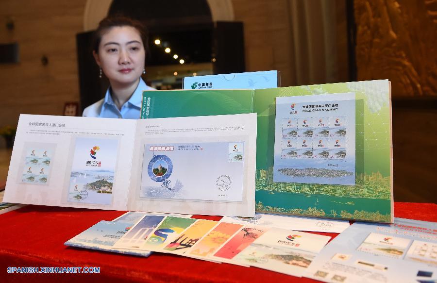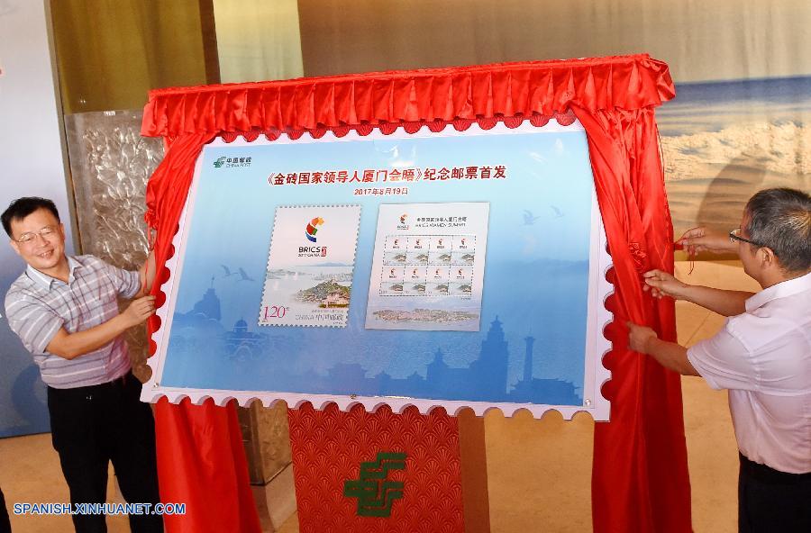 XIAMEN, 19 ago (Xinhua) -- El servicio postal de China, China Post, emitió hoy sábado una estampilla para conmemorar la Cumbre de los BRICS que se celebrará el mes próximo en Xiamen, ciudad de la provincia oriental de Fujian.