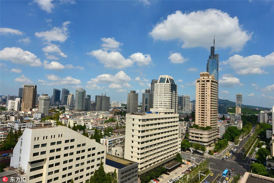 Una vista de los edificios en la ciudad de Nanjing bajo el cielo despejado, el 23 de agosto de 2017. [Foto / IC]