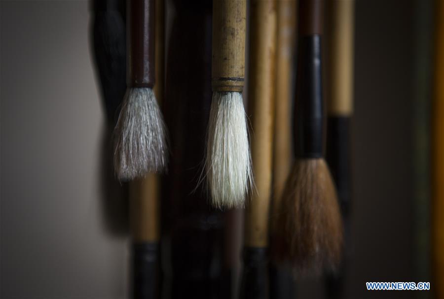 Foto del 18 de agosto de 2017 muestra los pinceles del artista argentino Martin Mazia en Buenos Aires, capital de Argentina. Mazia, que ahora ense?a caligrafía y pintura china, así como idioma chino, comenzó a estudiar arte chino hace más de 15 a?os y ha expuesto sus obras en muchos países, entre ellos Argentina y Colombia. Esas obras sirven como vínculo cultural entre América Latina y China. [Foto / Xinhua]
