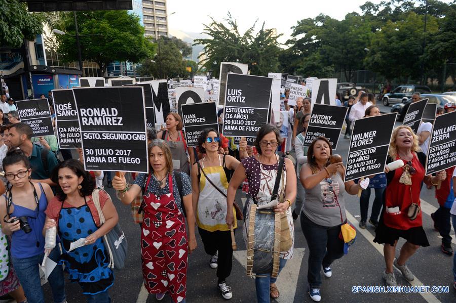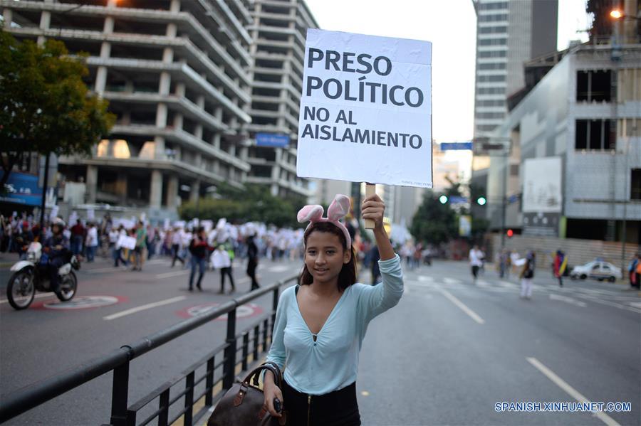 CARACAS, agosto 30, 2017 (Xinhua) -- Personas participan durante una movilización en Caracas, Venezuela, el 30 de agosto de 2017. De acuerdo con información de la prensa local, organizaciones ciudadanas marcharon del Parque Cristal a la Plaza Bolívar de Chacao, en protesta por la crisis que se vive en Venezuela, y también en honor de las personas que murieron durante las manifestaciones registradas en meses recientes y de los denominados "presos políticos". (Xinhua/Str)