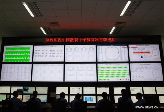 Foto del 1 de septiembre de 2017 muestra a ingenieros en la sala de control del acelerador circular para la Fuente de Neutrones porEspalación” de China (CSNS) en Dongguan, provincia de Guangdong. Según una rueda de prensa celebrada el viernes en el Instituto de Física de Alta Energía de la Academia China de Ciencias en Dongguan, el 28 de agosto de 2017 se obtuvo por primera vez un rayo de neutrones en el CSNS, lo que marca la finalización de la construcción principal y el inicio de la fase de operación de pruebas para el proyecto CSNS, una gran instalación científica a nivel nacional. El proyecto debe estar completamente terminado y abierto a los usuarios chinos y extranjeros para el a?o 2018 según lo programado. (Xinhua / JinLiwang)