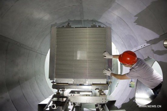 Foto del 1 de septiembre de 2017 muestra a ingenieros trabajando con un instrumento de la Fuente de Neutrones porEspalación” de China (CSNS) en Dongguan, provincia de Guangdong. Según una rueda de prensa celebrada el viernes en el Instituto de Física de Alta Energía de la Academia China de Ciencias en Dongguan, el 28 de agosto de 2017 se obtuvo por primera vez un rayo de neutrones en el CSNS, lo que marca la finalización de la construcción principal y el inicio de la fase de operación de pruebas para el proyecto CSNS, una gran instalación científica a nivel nacional. El proyecto debe estar completamente terminado y abierto a los usuarios chinos y extranjeros para el a?o 2018 según lo programado. (Xinhua / JinLiwang)