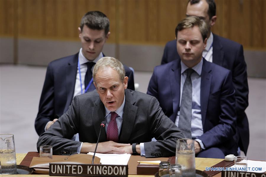 El embajador británico ante la Organización de las Naciones Unidas (ONU), Matthew Rycroft (frente), participa durante una reunión de emergencia del Consejo de Seguridad de la ONU sobre la prueba nuclear de República Popular Democrática de Corea (RPDC), en la sede de la ONU en Nueva York, Estados Unidos, el 4 de septiembre de 2017. Varios miembros del Consejo de Seguridad de las Naciones Unidas (CSNU) han demandado una reacción firme a la reciente prueba nuclear de la República Popular Democrática de Corea (RPDC). (Xinhua/Li Muzi)