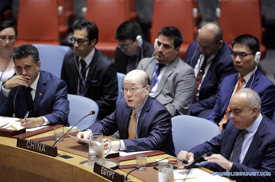 Liu Jieyi (c-frente), el representante permanente de China ante la Organización de las Naciones Unidas (ONU), participa durante una reunión de emergencia del Consejo de Seguridad de la ONU sobre la prueba nuclear de República Popular Democrática de Corea (RPDC), en la sede de la ONU en Nueva York, Estados Unidos, el 4 de septiembre de 2017. Varios miembros del Consejo de Seguridad de las Naciones Unidas (CSNU) han demandado una reacción firme a la reciente prueba nuclear de la República Popular Democrática de Corea (RPDC). (Xinhua/Li Muzi)