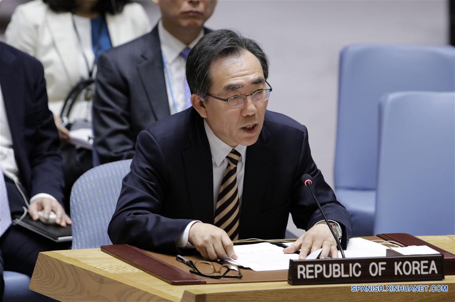 El embajador de República de Corea ante la Organización de las Naciones Unidas (ONU), Cho Tae-yul, participa durante una reunión de emergencia del Consejo de Seguridad de la ONU sobre la prueba nuclear de República Popular Democrática de Corea (RPDC), en la sede de la ONU en Nueva York, Estados Unidos, el 4 de septiembre de 2017. Varios miembros del Consejo de Seguridad de las Naciones Unidas (CSNU) han demandado una reacción firme a la reciente prueba nuclear de la República Popular Democrática de Corea (RPDC). (Xinhua/Li Muzi)