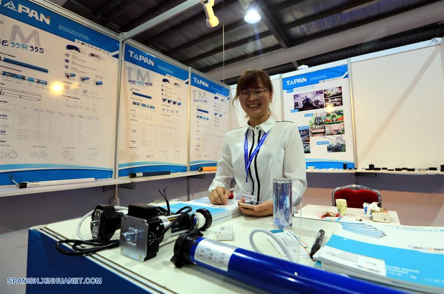 Vista de un estand en la 14 Exposición de China (Jordania), en Amán, Jordania, el 6 de septiembre de 2017. (Xinhua/Mohammad Abu Ghosh)