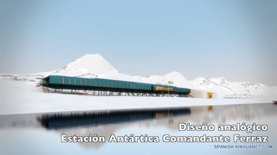Vista del dise?o analógico de la nueva Estación Antártica Comandante Ferraz de Brasil. (Xinhua/Imagen capturada del video)