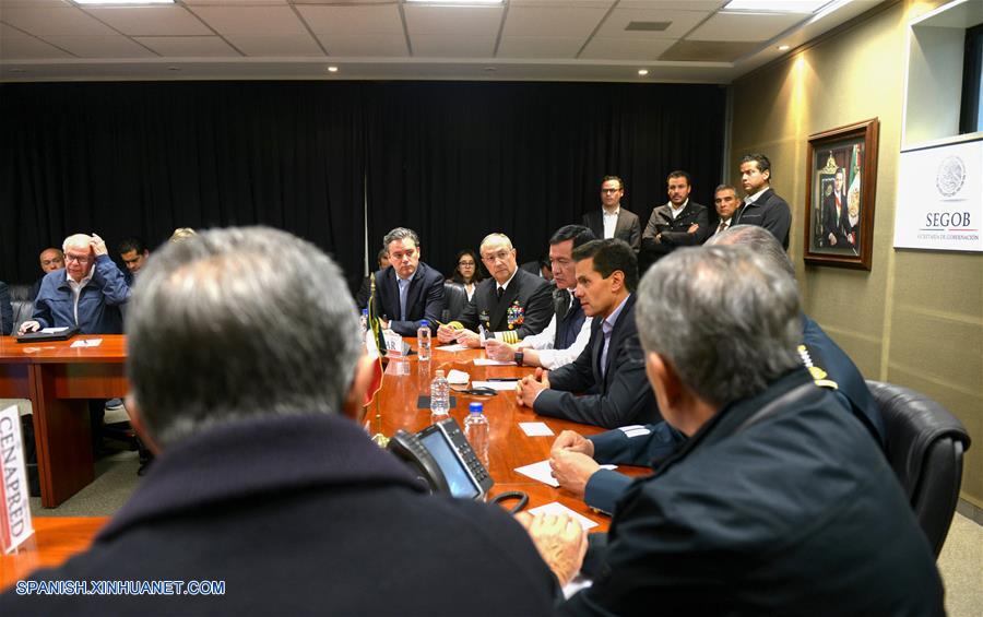 Imagen cedida por la Presidencia de México, del presidente mexicano Enrique Pe?a Nieto (c), reuniéndose con funcionarios tras el sismo en el Centro Nacional de Prevención de Desastres (Cenapred), en la Ciudad de México, capital de México, el 8 de septiembre de 2017. (Xinhua/Presidencia de México)