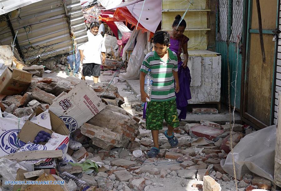 OAXACA, septiembre 8, 2017 (Xinhua) -- Un ni?o reacciona en el sitio de un derrumbe provocado por un sismo en Juchitán, estado de Oaxaca, México, el 8 de septiembre de 2017. (Xinhua/David de la Paz)