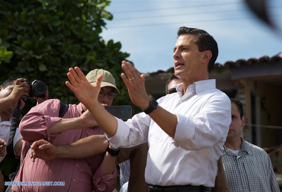 OAXACA, septiembre 8, 2017 (Xinhua) -- El presidente mexicano, Enrique Pe?a Nieto (d), conversa con residentes y autoridades durante una visita a un área afectada por un sismo en Juchitán, estado de Oaxaca, México, el 8 de septiembre de 2017. (Xinhua/Dan Hang)