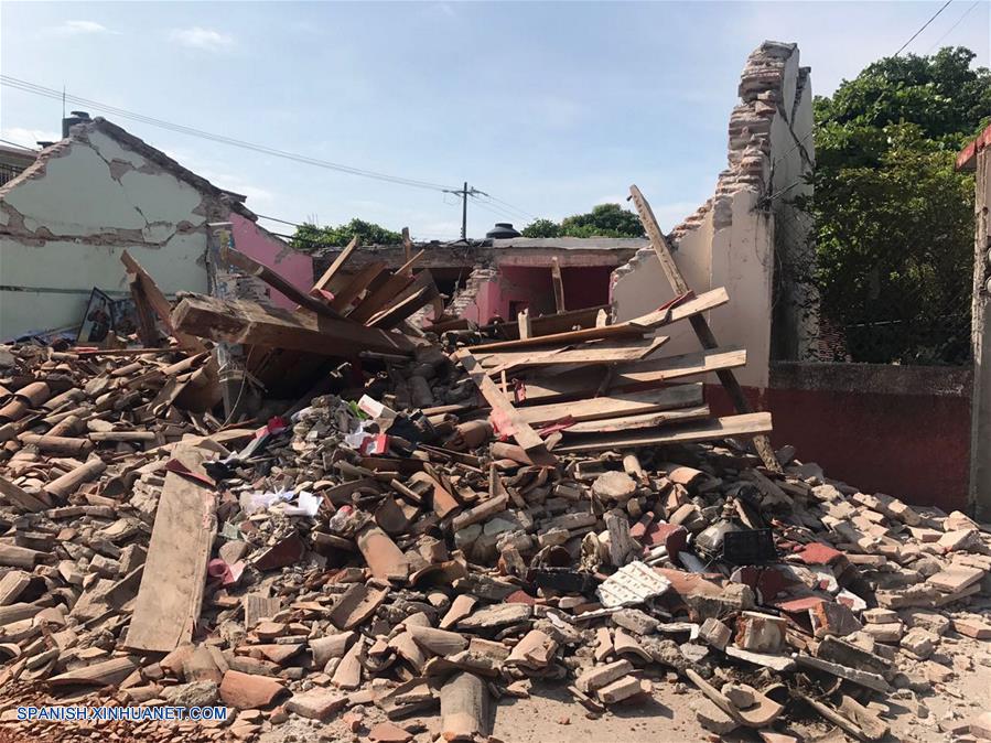 OAXACA, septiembre 8, 2017 (Xinhua) -- Vista de una construcción destruida después del sismo, en Juchitán, en el estado de Oaxaca, México, el 8 de septiembre de 2017. (Xinhua/Str)