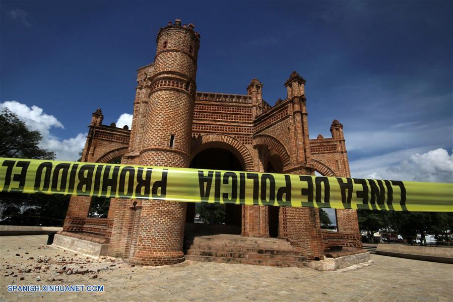 CHIAPAS, septiembre 8, 2017 (Xinhua) -- Una construcción permanece acordonada después del sismo, en Chiapa de Corzo, en el estado de Chiapas, México, el 8 de septiembre de 2017. (Xinhua/Str)